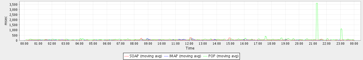 Host zm08.stanford.edu: Mailboxd: Response Time by Client Protocol