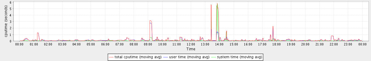 avg(total cputime) = 0.05 avg(user time) = 0.03 avg(system time) = 0.02