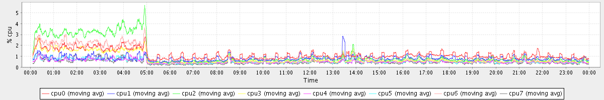 avg(cpu0) = 1.09 avg(cpu1) = 0.08 avg(cpu2) = 0.14 avg(cpu3) = 0.07 avg(cpu4) = 0.05 avg(cpu5) = 0.05 avg(cpu6) = 0.10 avg(cpu7) = 0.04