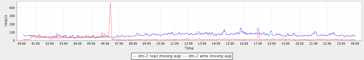 avg(dm-2 read) = 400.42 avg(dm-2 write) = 552.04