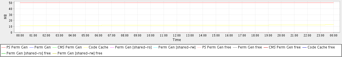 avg(PS Perm Gen) = 50.19 avg(Perm Gen) = 0.00 avg(CMS Perm Gen) = 0.00 avg(Code Cache) = 12.02 avg(Perm Gen [shared-ro]) = 0.00 avg(Perm Gen [shared-rw]) = 0.00 avg(PS Perm Gen free) = 0.10 avg(Perm Gen free) = 0.00 avg(CMS Perm Gen free) = 0.00 avg(Code Cache free) = 0.05 avg(Perm Gen [shared-ro] free) = 0.00 avg(Perm Gen [shared-rw] free) = 0.00