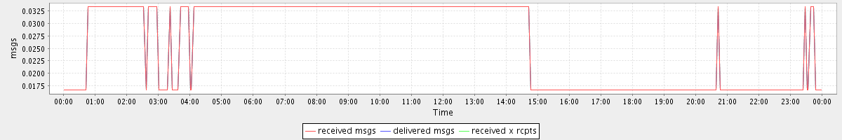 avg(received msgs) = 0.01 avg(delivered msgs) = 0.01 avg(received x rcpts) = 0.01