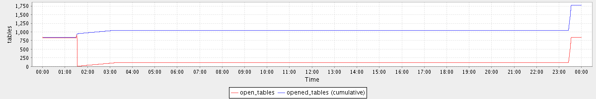 avg(open_tables) = 166.59 avg(opened_tables (cumulative)) = 1046.81