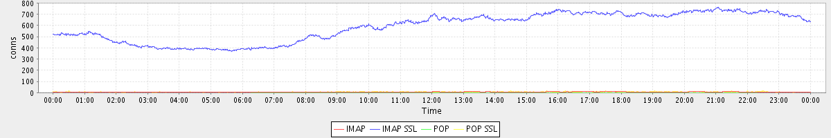 Host zm07.stanford.edu: Mailboxd: Active Connections by Client Protocol