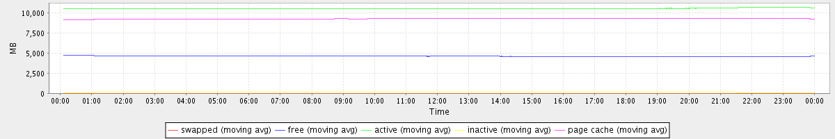 avg(swapped) = 0.20 avg(free) = 4624.64 avg(active) = 10564.11 avg(inactive) = 151.82 avg(page cache) = 9300.49