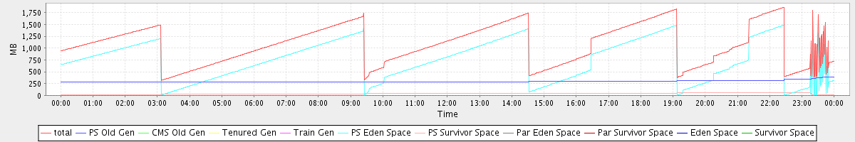 avg(total) = 1073.87 avg(PS Old Gen) = 296.27 avg(CMS Old Gen) = 0.00 avg(Tenured Gen) = 0.00 avg(Train Gen) = 0.00 avg(PS Eden Space) = 739.95 avg(PS Survivor Space) = 37.65 avg(Par Eden Space) = 0.00 avg(Par Survivor Space) = 0.00 avg(Eden Space) = 0.00 avg(Survivor Space) = 0.00
