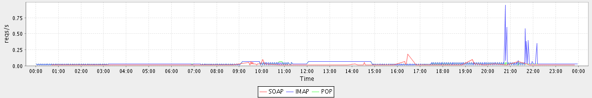Host zm01-int.stanford.edu: Mailboxd: Request Rate by Client Protocol