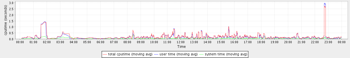 avg(total cputime) = 0.11 avg(user time) = 0.09 avg(system time) = 0.02