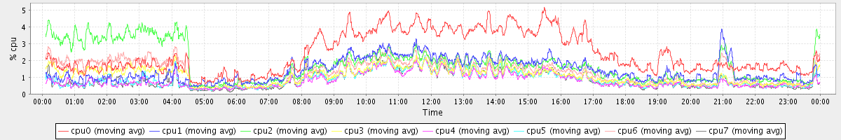 avg(cpu0) = 0.19 avg(cpu1) = 0.04 avg(cpu2) = 0.08 avg(cpu3) = 0.01 avg(cpu4) = 0.00 avg(cpu5) = 0.00 avg(cpu6) = 0.05 avg(cpu7) = 0.00