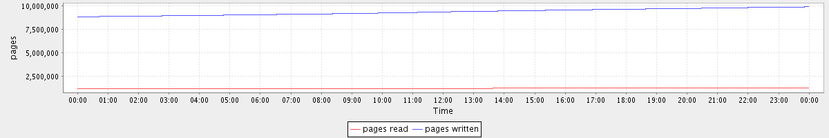 avg(pages read) = 1246035.33 avg(pages written) = 9361935.28