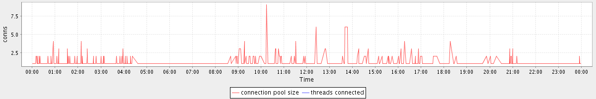 avg(connection pool size) = 0.53 avg(threads connected) = 0.00