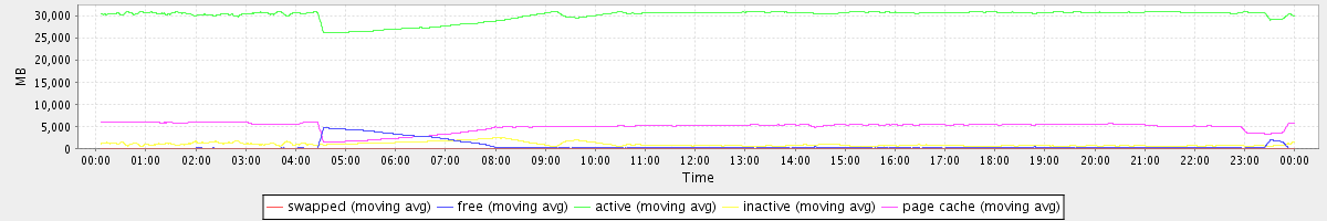 avg(swapped) = 0.25 avg(free) = 551.86 avg(active) = 30010.47 avg(inactive) = 926.87 avg(page cache) = 4889.30