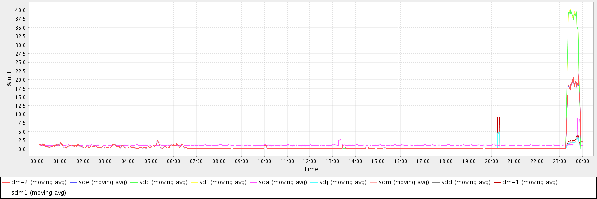 avg(dm-2) = 0.75 avg(sde) = 0.74 avg(sdc) = 0.86 avg(sdf) = 0.85 avg(sda) = 1.09 avg(sdj) = 0.07 avg(sdm) = 0.07 avg(sdd) = 0.00 avg(dm-1) = 0.11 avg(sdm1) = 0.00