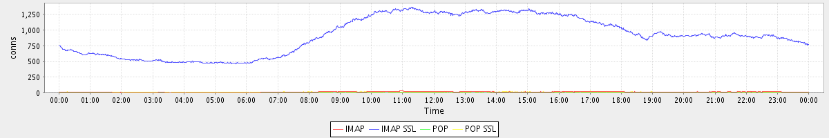 Host zm08.stanford.edu: Mailboxd: Active Connections by Client Protocol
