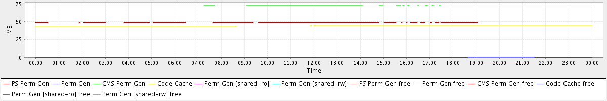 avg(PS Perm Gen) = 0.00 avg(Perm Gen) = 0.00 avg(CMS Perm Gen) = 72.93 avg(Code Cache) = 43.98 avg(Perm Gen [shared-ro]) = 0.00 avg(Perm Gen [shared-rw]) = 0.00 avg(PS Perm Gen free) = 0.00 avg(Perm Gen free) = 0.00 avg(CMS Perm Gen free) = 48.80 avg(Code Cache free) = 0.16 avg(Perm Gen [shared-ro] free) = 0.00 avg(Perm Gen [shared-rw] free) = 0.00