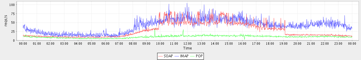 Host zm06.stanford.edu: Mailboxd: Request Rate by Client Protocol