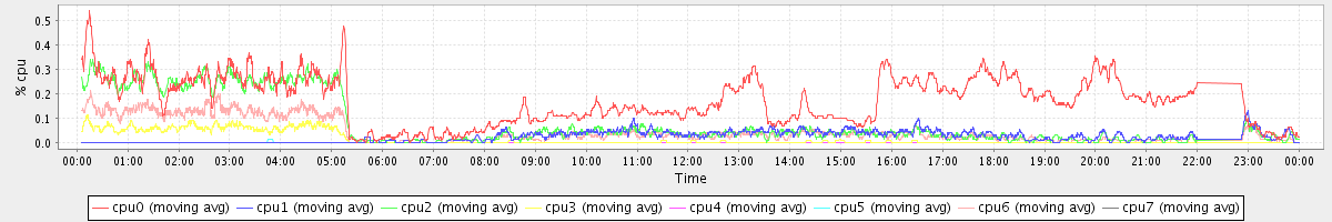 avg(cpu0) = 0.17 avg(cpu1) = 0.02 avg(cpu2) = 0.08 avg(cpu3) = 0.01 avg(cpu4) = 0.00 avg(cpu5) = 0.00 avg(cpu6) = 0.05 avg(cpu7) = 0.00