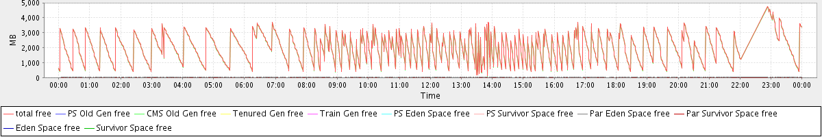 avg(total free) = 1980.99 avg(PS Old Gen free) = 0.00 avg(CMS Old Gen free) = 1960.22 avg(Tenured Gen free) = 0.00 avg(Train Gen free) = 0.00 avg(PS Eden Space free) = 0.00 avg(PS Survivor Space free) = 0.00 avg(Par Eden Space free) = 20.71 avg(Par Survivor Space free) = 0.06 avg(Eden Space free) = 0.00 avg(Survivor Space free) = 0.00