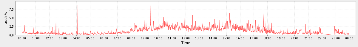 max(MsgActionRequest.move) = 389.00 max(MsgActionRequest.update) = 1350.00 max(NoOpRequest) = 189.00 max(GetFolderRequest) = 78.00 max(SyncRequest) = 908.00 max(GetAppointmentRequest) = 196.00 max(SearchRequest) = 139.00 max(GetContactsRequest) = 414.00 max(ContactActionRequest.delete) = 187.00 max(MsgActionRequest.delete) = 1034.00