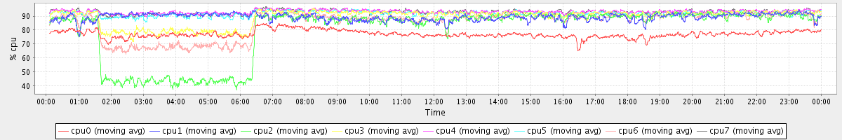 avg(cpu0) = 1.08 avg(cpu1) = 0.72 avg(cpu2) = 1.21 avg(cpu3) = 0.74 avg(cpu4) = 0.49 avg(cpu5) = 0.50 avg(cpu6) = 0.81 avg(cpu7) = 0.41