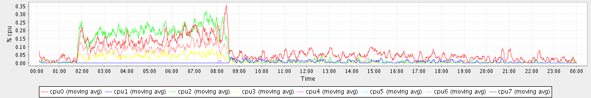 avg(cpu0) = 0.07 avg(cpu1) = 0.00 avg(cpu2) = 0.06 avg(cpu3) = 0.01 avg(cpu4) = 0.00 avg(cpu5) = 0.00 avg(cpu6) = 0.03 avg(cpu7) = 0.00