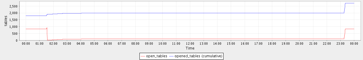 avg(open_tables) = 171.49 avg(opened_tables (cumulative)) = 1996.24