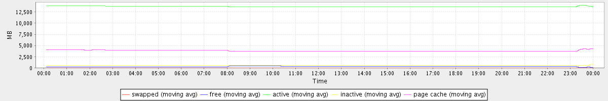 avg(swapped) = 0.23 avg(free) = 297.47 avg(active) = 13724.03 avg(inactive) = 538.64 avg(page cache) = 3816.89