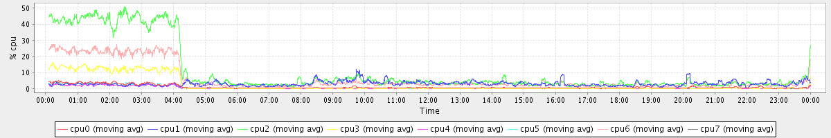 avg(cpu0) = 1.11 avg(cpu1) = 0.73 avg(cpu2) = 1.10 avg(cpu3) = 0.69 avg(cpu4) = 0.45 avg(cpu5) = 0.47 avg(cpu6) = 0.70 avg(cpu7) = 0.39
