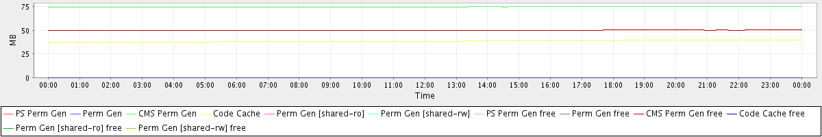 avg(PS Perm Gen) = 0.00 avg(Perm Gen) = 0.00 avg(CMS Perm Gen) = 74.69 avg(Code Cache) = 38.55 avg(Perm Gen [shared-ro]) = 0.00 avg(Perm Gen [shared-rw]) = 0.00 avg(PS Perm Gen free) = 0.00 avg(Perm Gen free) = 0.00 avg(CMS Perm Gen free) = 49.94 avg(Code Cache free) = 0.07 avg(Perm Gen [shared-ro] free) = 0.00 avg(Perm Gen [shared-rw] free) = 0.00