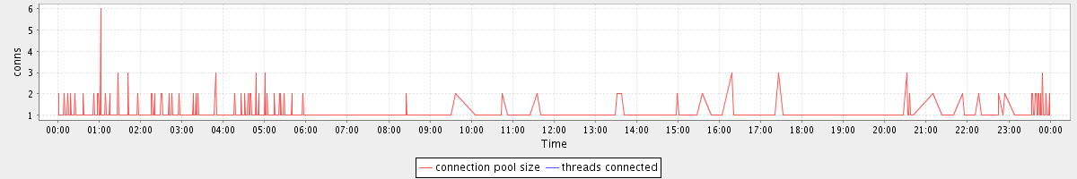 avg(connection pool size) = 0.46 avg(threads connected) = 0.00