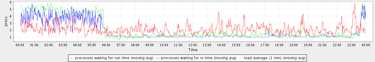 avg(processes waiting for run time) = 1.05 avg(processes waiting for io time) = 1.03 avg(load average (1 min)) = 2.19