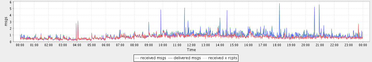 avg(received msgs) = 0.67 avg(delivered msgs) = 0.84 avg(received x rcpts) = 0.89