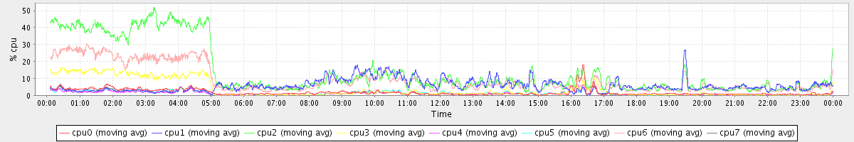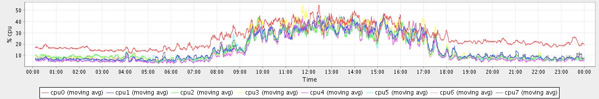 avg(cpu0) = 2.09 avg(cpu1) = 0.23 avg(cpu2) = 0.27 avg(cpu3) = 0.17 avg(cpu4) = 0.13 avg(cpu5) = 0.14 avg(cpu6) = 0.21 avg(cpu7) = 0.14