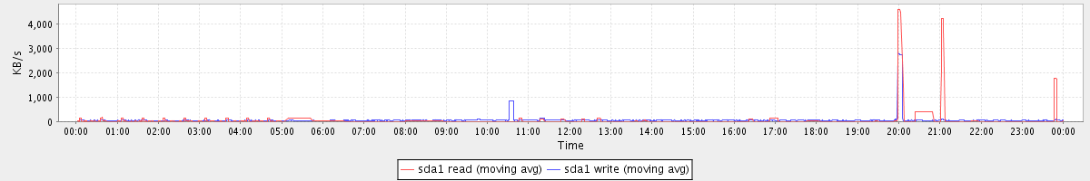 avg(sda1 read) = 31.64 avg(sda1 write) = 69.18