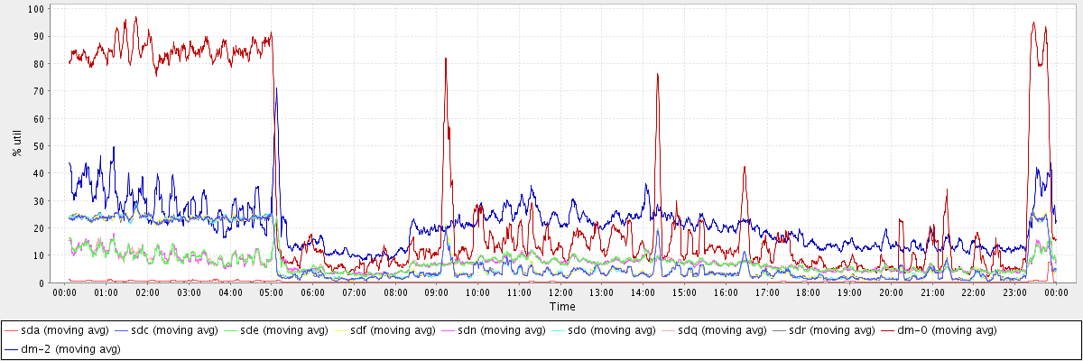 avg(sda) = 0.35 avg(sdc) = 8.01 avg(sde) = 7.20 avg(sdf) = 8.02 avg(sdn) = 7.20 avg(sdo) = 8.02 avg(sdq) = 7.22 avg(sdr) = 8.06 avg(dm-0) = 29.17 avg(dm-2) = 20.99