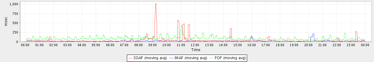 Host zm01.stanford.edu: Mailboxd: Response Time by Client Protocol