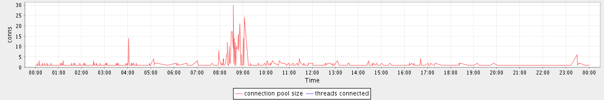 avg(connection pool size) = 0.72 avg(threads connected) = 0.00