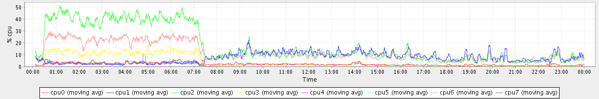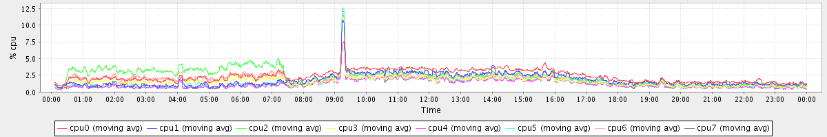 avg(cpu0) = 2.21 avg(cpu1) = 0.36 avg(cpu2) = 0.39 avg(cpu3) = 0.29 avg(cpu4) = 0.21 avg(cpu5) = 0.25 avg(cpu6) = 0.31 avg(cpu7) = 0.26