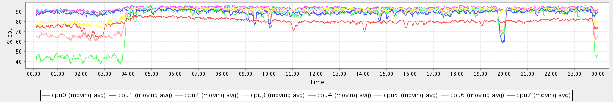 avg(cpu0) = 79.69 avg(cpu1) = 89.06 avg(cpu2) = 81.28 avg(cpu3) = 90.48 avg(cpu4) = 93.83 avg(cpu5) = 92.78 avg(cpu6) = 86.59 avg(cpu7) = 92.72