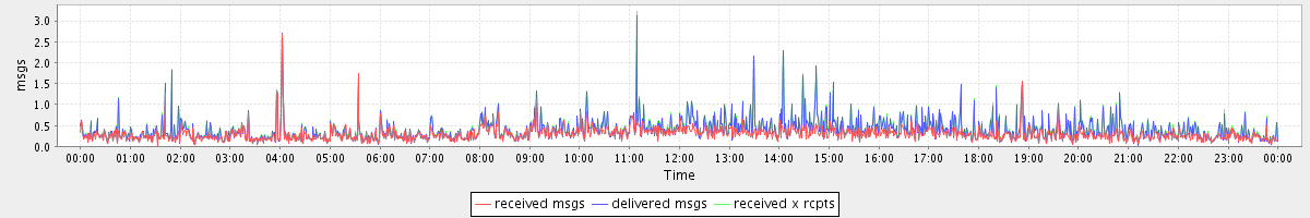 avg(received msgs) = 0.29 avg(delivered msgs) = 0.38 avg(received x rcpts) = 0.40