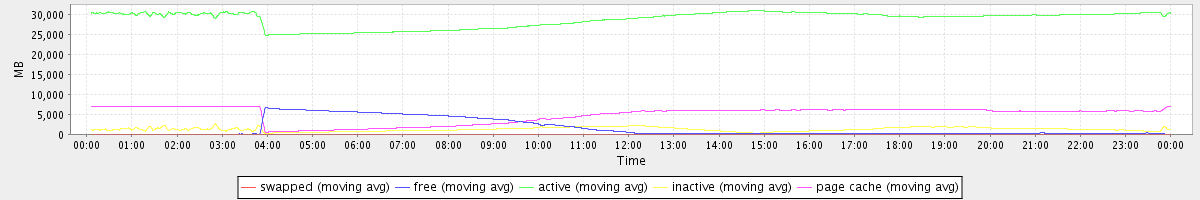 avg(swapped) = 0.25 avg(free) = 1512.81 avg(active) = 28733.42 avg(inactive) = 1251.84 avg(page cache) = 4942.94