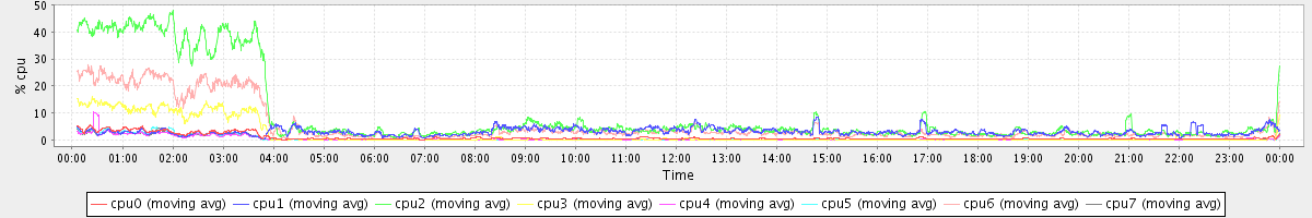 avg(cpu0) = 1.11 avg(cpu1) = 0.75 avg(cpu2) = 1.06 avg(cpu3) = 0.69 avg(cpu4) = 0.46 avg(cpu5) = 0.47 avg(cpu6) = 0.69 avg(cpu7) = 0.39