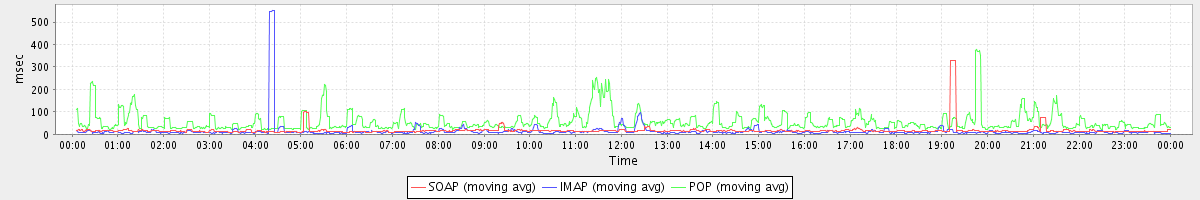Host zm05.stanford.edu: Mailboxd: Response Time by Client Protocol