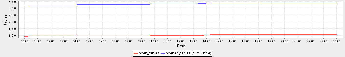 avg(open_tables) = 1003.06 avg(opened_tables (cumulative)) = 3335.80