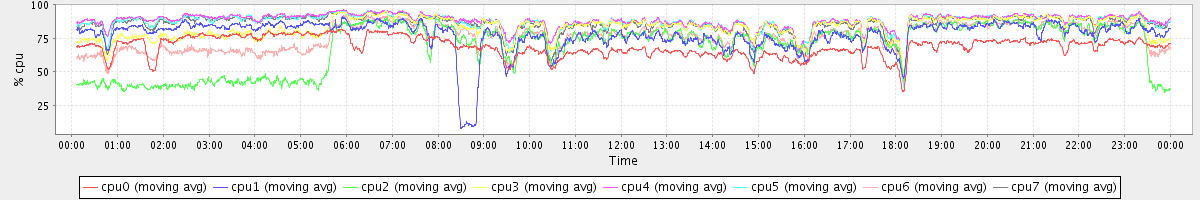 avg(cpu0) = 0.88 avg(cpu1) = 0.87 avg(cpu2) = 0.32 avg(cpu3) = 0.21 avg(cpu4) = 0.17 avg(cpu5) = 0.15 avg(cpu6) = 0.25 avg(cpu7) = 0.18