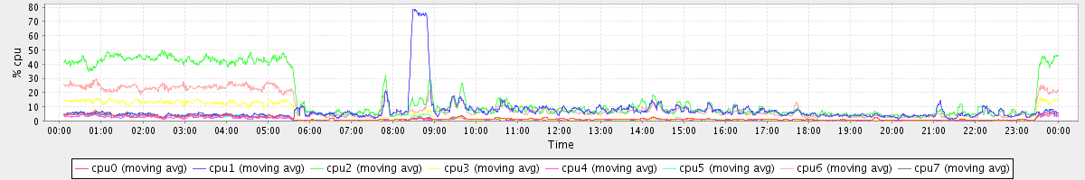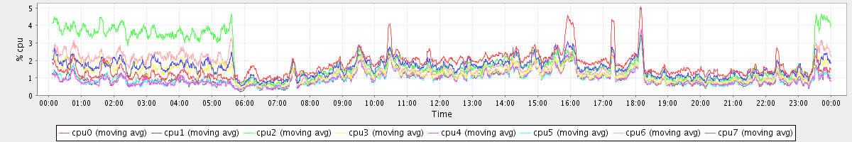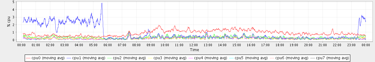 avg(cpu0) = 0.09 avg(cpu1) = 0.08 avg(cpu2) = 0.09 avg(cpu3) = 0.02 avg(cpu4) = 0.00 avg(cpu5) = 0.00 avg(cpu6) = 0.05 avg(cpu7) = 0.00