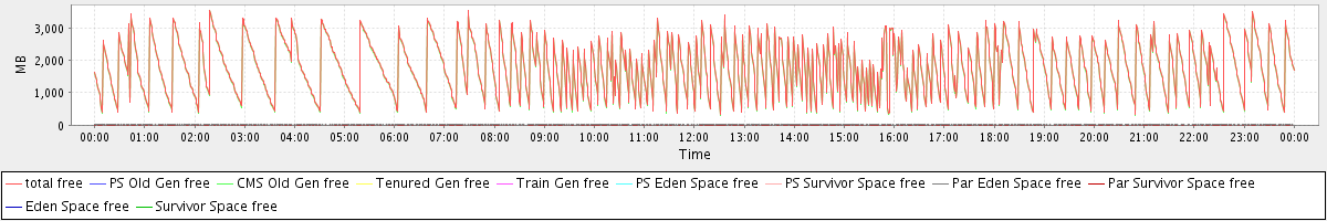 avg(total free) = 1769.76 avg(PS Old Gen free) = 0.00 avg(CMS Old Gen free) = 1748.21 avg(Tenured Gen free) = 0.00 avg(Train Gen free) = 0.00 avg(PS Eden Space free) = 0.00 avg(PS Survivor Space free) = 0.00 avg(Par Eden Space free) = 21.49 avg(Par Survivor Space free) = 0.06 avg(Eden Space free) = 0.00 avg(Survivor Space free) = 0.00