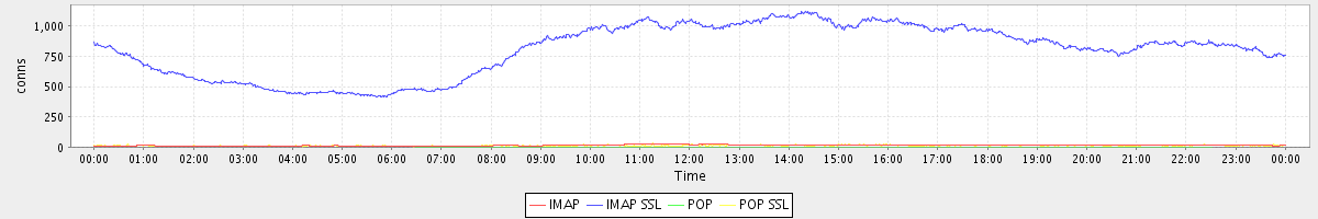 avg(IMAP) = 14.81 avg(IMAP SSL) = 801.25 avg(POP) = 0.07 avg(POP SSL) = 12.33