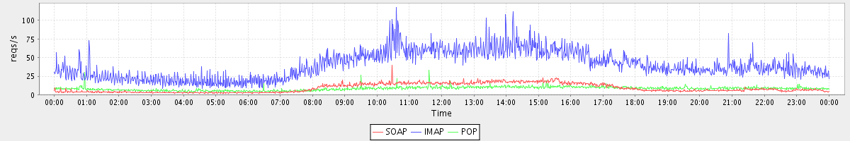 Host zm02.stanford.edu: Mailboxd: Request Rate by Client Protocol