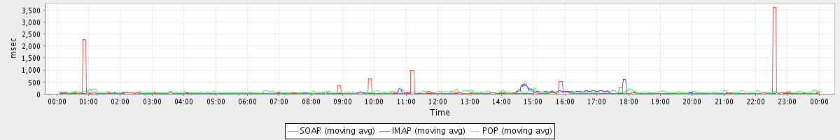Host zm02.stanford.edu: Mailboxd: Response Time by Client Protocol